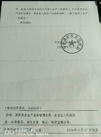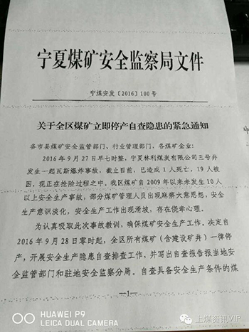 9月27日,寧夏煤礦安全監(jiān)察局為認(rèn)真吸取此次事故的教訓(xùn),確保煤礦安全生產(chǎn)工作,印發(fā)緊急通知。通知指出自2016年9月28日零時(shí)起,全區(qū)所有煤礦(含建設(shè)礦井)一律停產(chǎn),開展安全生產(chǎn)隱患自查排查工作,并寫出自查報(bào)告報(bào)當(dāng)?shù)匕踩O(jiān)管部門和駐地安全監(jiān)察分局。自查具備安全生產(chǎn)條件的煤礦,經(jīng)復(fù)工驗(yàn)收合格后方可開工生產(chǎn)(或建設(shè)),不具備安生生產(chǎn)條件的煤礦,或經(jīng)復(fù)工驗(yàn)收不合格的煤礦,一律不得開工生產(chǎn)(或建設(shè))。