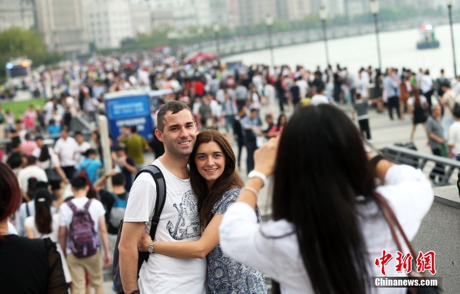 10月3日,上海各景點(diǎn)迎來大客流,作為上海地標(biāo)的外灘更是游客如潮。 中新社記者 湯彥俊 攝