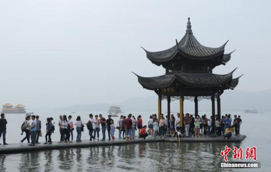 資料圖:杭州西湖集賢亭吸引了不少游客前來(lái)參觀。中新社記者 王剛 攝