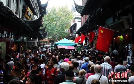 資料圖:10月3日,上海各景點迎來大客流,城隍廟游人如織,秩序井然。 中新社記者 湯彥俊 攝