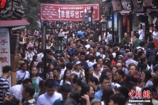 資料圖:10月7日,國慶長假最后一天,重慶磁器口古鎮(zhèn)游客依然“爆棚”。 陳超 攝