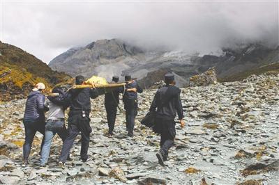 民警四人一組輪流抬擔(dān)架 徒步20公里轉(zhuǎn)移驢友遺體