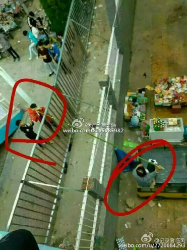 據(jù)@駐馬店生活消息,“自從去年冬天一個企業(yè)在泌陽縣第二高級中學(xué)蓋起食堂后,該校學(xué)生放學(xué)后自由出入校園、在校外購物、就餐的機會就被剝奪了。數(shù)千名學(xué)生的校園只保留一個小賣部,學(xué)生每日也只準出入校園一次,且不得帶食物入校!币虿粷M學(xué)校食堂的餐品及價格,許多學(xué)生選擇隔墻購買校外的食物。此種校外購食物的舉動,引起了學(xué)校不滿,為了迫使學(xué)生停止與校外商戶交易,校方不僅派老師,近期又花錢在原院墻外2米處,再焊起一圈鐵柵欄。于是,“長桿”隔雙墻交易的場景發(fā)生了。