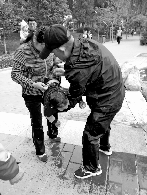 這時,張連祖才意識到自己渾身濕透,“衣服一濕凍得發(fā)抖。我一摸兜才發(fā)現(xiàn)跳湖前沒把手機掏出來,進水報廢了”。一同練地書的朋友劉先生目睹了整個過程,見孩子沒事,便囑咐張連祖趕快回家換衣服。張連祖走后不久,黃衣女子抱著小孩離開。