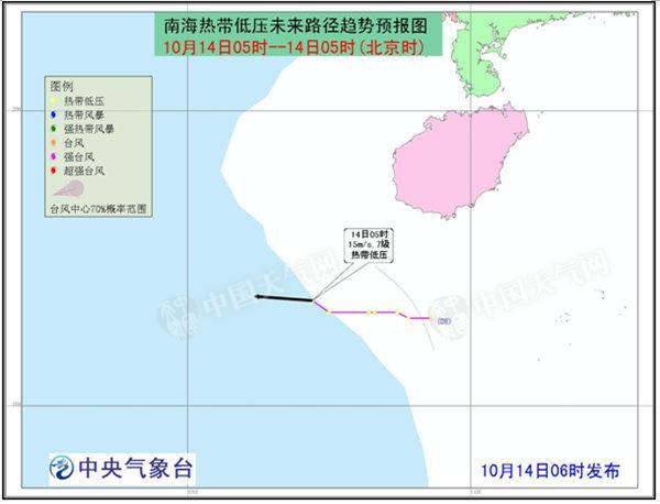 中國天氣網(wǎng)訊 中央氣象臺14日06時繼續(xù)發(fā)布熱帶低壓預(yù)報: