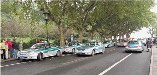 無獨(dú)有偶,本報(bào)記者上周日在孤山路,也遇到了“藍(lán)瘦香菇”的一幕:盡管路邊的游客不停上前詢問,卻幾乎沒有一輛出租車愿意載客,要不司機(jī)就是獅子大開口。