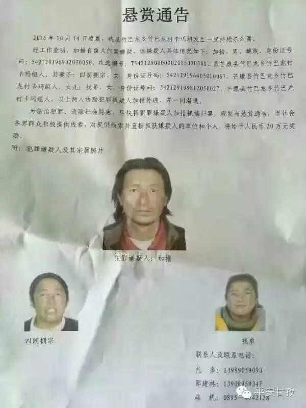 警方發(fā)布的嫌犯加措照片。 平安甘孜 圖
