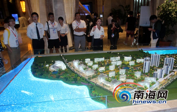 文昌高龍灣1號的工作人員向網(wǎng)媒記者介紹該地產(chǎn)樓盤項目。 南海網(wǎng)記者陳望 攝
