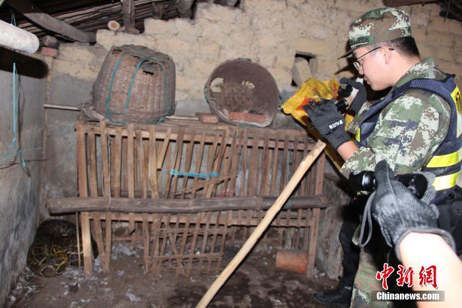 10月20日,廣西防城港那良邊防派出所官兵捕獲一條闖入村民家中偷吃鴨子的蟒蛇,蟒蛇長約3米重達(dá)30余斤。據(jù)介紹,該條蟒蛇被發(fā)現(xiàn)時昂著頭,吐著信子,高度警惕,當(dāng)邊防官兵抓住蟒蛇尾部將其拖出空曠地帶時,受到驚嚇的蟒蛇從嘴里吐出了3只鴨子。目前,該條蟒蛇已被放歸山林。羅明前 攝