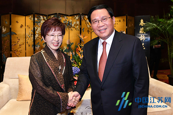 10月30日晚,中共江蘇省委書(shū)記李強(qiáng)在南京會(huì)見(jiàn)國(guó)民黨主席洪秀柱。新華報(bào)業(yè)全媒體記者朱江攝