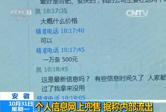 個(gè)人信息網(wǎng)上兜售 據(jù)稱(chēng)內(nèi)部流出
