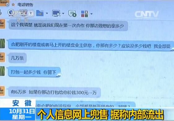 央視記者在網(wǎng)上也進(jìn)行了一番調(diào)查,發(fā)現(xiàn)不少人明目張膽地出售各種個(gè)人信息,比如小區(qū)業(yè)主的信息,以幾百塊錢(qián)一萬(wàn)條的價(jià)格在網(wǎng)上公開(kāi)叫賣(mài)。而據(jù)販賣(mài)信息的人員稱(chēng):這些信息都是從內(nèi)部弄出來(lái)的。