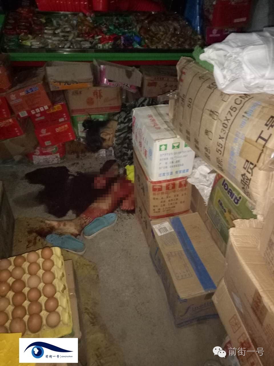 王先生說(shuō),次日凌晨3點(diǎn),警方在距離店鋪6、7米遠(yuǎn)的一個(gè)小水坑里發(fā)現(xiàn)一把沾有血跡的匕首,“刀刃長(zhǎng)約15厘米!蓖跸壬峁┑恼掌@示,在一間堆滿食品箱和雜貨的屋內(nèi),兩名女子倒在血泊之中,帶白手套的工作人員對(duì)死者進(jìn)行查看。