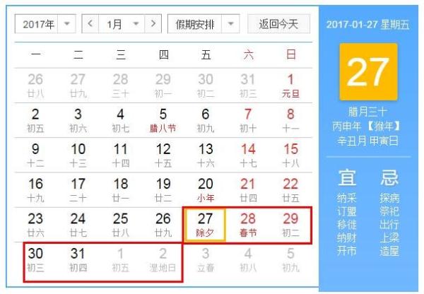 1月29日(星期日,農(nóng)歷正月初二)為法定節(jié)假日。