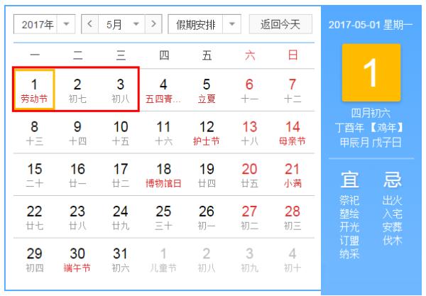 5月1日(星期一、“五一”國際勞動節(jié))為法定節(jié)假日。