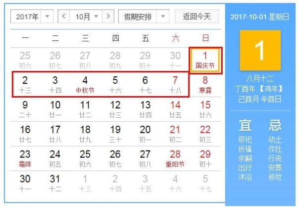 10月3日(星期二)為國慶節(jié)法定節(jié)假日。