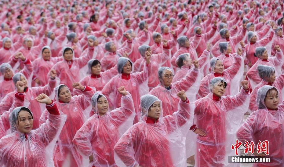 11月7日,在武漢分會場大媽、大叔們在雨中齊跳廣場舞。當(dāng)日,在“西班牙斗牛舞”、“生命之杯”的樂曲中,5萬余名中國大媽、大叔們在北京、上海、天津、武漢等14個城市同跳一支廣場舞。一起挑戰(zhàn)最大規(guī)模排舞(多場地)吉尼斯世界紀(jì)錄。據(jù)活動主辦方介紹,同一時間、不同場地、同跳一支舞曲,挑戰(zhàn)最大規(guī)模排舞(多場地)吉尼斯世界紀(jì)錄,在全國多個重點城市一起舉行,是迄今為止全國范圍內(nèi)發(fā)起的最大規(guī)模廣場舞活動。張暢 攝