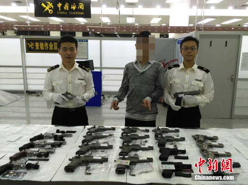 11月28日,深圳皇崗海關(guān)發(fā)布消息稱,該關(guān)在福田口岸查獲一名香港旅客利用背包藏匿槍支彈藥入境案件,共查獲氣動力槍22支、鉛制子彈6347發(fā),其他配件若干。 鄭小紅 蔣昕 攝