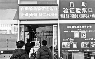 使用自助驗票很方便,旅客需要先取出二代身份證和藍色磁卡車票,將遮擋面部的口罩、墨鏡等摘掉。將身份證和車票要疊放在一起,同時放入機器的插口中,然后面向攝像頭稍作停留等待機器進行識別。只要票、證、人相符,閘門就會開啟,旅客只要取出身份證和車票就可以通過了。通過后,再進行安檢進站。