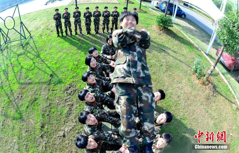 12月2日,武警湖北總隊(duì)女兵新訓(xùn)中隊(duì)組織女兵開展心理行為訓(xùn)練。針對新兵心理素質(zhì)較弱、適應(yīng)新環(huán)境較慢的實(shí)際,該總隊(duì)組織了從3米高臺上后仰倒下落入戰(zhàn)友懷抱、穿越電網(wǎng)、縱深飛躍等具有放松性、啟發(fā)性、合作性的心理行為訓(xùn)練科目,旨在培養(yǎng)新兵相互關(guān)心、相互協(xié)作、相互信任和相互鼓舞的團(tuán)隊(duì)合作精神。何智利 攝