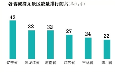 其中,東北地區(qū)治理整頓力度最大。繼10月份吉林省取消了4家4A級(jí)景區(qū)資質(zhì)后,黑龍江和遼寧又有8家4A級(jí)景區(qū)被摘牌。其中,黑龍江取消了5家4A級(jí)景區(qū)資質(zhì),另有5家4A級(jí)景區(qū)被降級(jí)、22家4A級(jí)景區(qū)被警告;遼寧取消了3家4A級(jí)景區(qū)資質(zhì)。另外,遼寧、黑龍江、河南、江蘇、吉林和四川等6省本次處理A級(jí)景區(qū)超過20家。