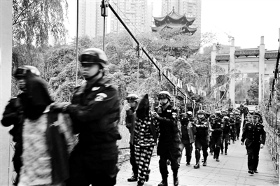 “炫耀幫”成員在警方押解下前往當(dāng)年殺人練膽的事發(fā)地三閣公園
