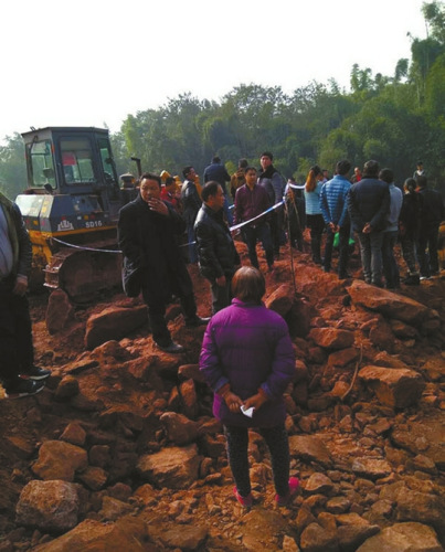 “7日早上8點(diǎn)過,正好在家對(duì)面的施工點(diǎn)開始施工,聽得到推土機(jī)的作業(yè)聲音。村主任羅松找到我,說施工人員還要施工一天半,今天要把已經(jīng)推出來的地方,降低坡度,且推出來的土石不會(huì)推落在我的田地里,讓我勸勸母親不要去阻工。村主任這樣說,我就答應(yīng)了,隨后我就到下長(zhǎng)鎮(zhèn)趕集去了。”羅忠成說,等我接到親戚電話后,慌忙趕回家時(shí),慘劇已經(jīng)發(fā)生了。