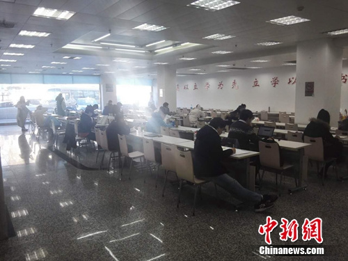 “在這兒上自習的基本是考研族或者需要考資格證的那些人。平時人就不少,周末常常爆滿!痹谪S臺區(qū)圖書館,正準備考研的劉霞說,“基本每天早晨九點開門不久就有人來自習室看書,想有位子還是得早到”。