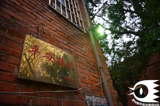 2015年9月,宿舍樓墻壁上掛著“平安樓棟”牌匾。