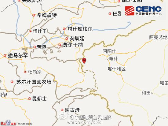 中國地震臺網正式測定:12月19日18時57分在新疆克孜勒蘇州阿克陶縣(北緯39.18度,東經73.96度)發(fā)生4.0級地震,震源深度6千米。