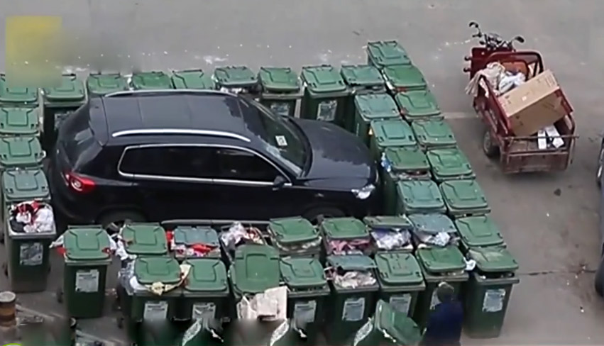 近日,合肥市一小區(qū)門外,有私家車停在了居民生活垃圾臨時(shí)停放點(diǎn),因無(wú)法聯(lián)系上車主,環(huán)衛(wèi)大爺用垃圾桶圍起這輛亂停的車。