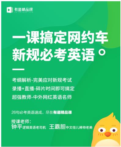 有道精品課名師鐘平老師給專車司機吃了一顆“定心丸”,他說,此次網(wǎng)約車從業(yè)資格考試中的英語考試并不算太難,主要考察的是司機日常運營服務(wù)中面對外籍客戶的常用口語,有道完全是針對網(wǎng)約車司機特別定制的,就是為了幫助零基礎(chǔ)的司機通過資格考試,能繼續(xù)干他們的老本行。