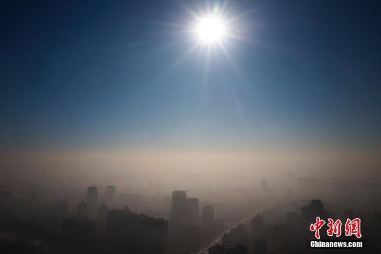 1月2日,霧霾暫別北京,藍天漸現(xiàn),撥霧見日。中新社記者 侯宇 攝