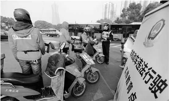 原標(biāo)題:杭州交警整治電動(dòng)車(chē)違法,十分鐘里三位外賣(mài)小哥被攔下