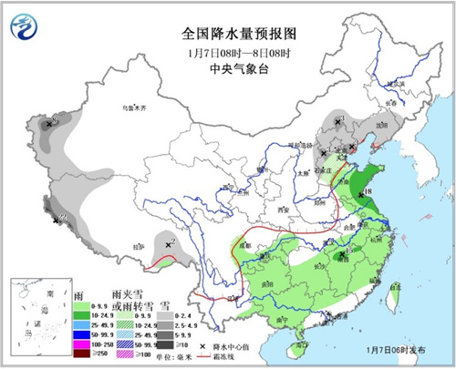 7日08時(shí)至8日08時(shí),華北中東部、東北地區(qū)南部、新疆南疆西部、西藏西部和東南部等地有小到中雪或雨夾雪,其中西藏西南部的部分地區(qū)有大到暴雪,局地大暴雪;黃淮東部、江淮東部、江南、華南北部、西南地區(qū)東部等地有小到中雨。東海東北部將有6~7級、陣風(fēng)8級的風(fēng)。