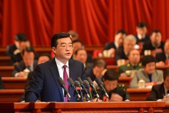 圖為河北省省長張慶偉代表省政府向大會作政府工作報告