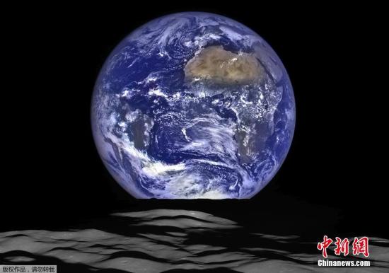 地球右上方大塊褐色地區(qū)為撒哈拉沙漠,左側可以清晰看到大西洋和太平洋。在月球上,可以看到火山口康普頓。這一照片是由10月12日拍攝的一系列照片合成的。