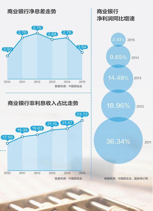 18.96%、14.48%、9.65%、2.43%,從2012年到2015年,商業(yè)銀行凈利潤增幅走出了一條明顯的下行曲線。