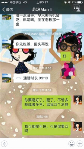 史國(guó)平與女友當(dāng)晚的微信聊天