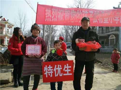 據(jù)介紹,在周口鄲城縣秋渠鄉(xiāng)2016-2017學年度抽評考試中,秋渠鄉(xiāng)希望小學綜合成績在全鄉(xiāng)一路領(lǐng)先,有5人喜獲“雙百分”,12人喜獲單科100分。為了表彰這些孩子們?nèi)〉玫膬?yōu)異成績,學校在超市精心購買了數(shù)十個豬后臀,敲鑼打鼓挨個村子給孩子們送去,并鼓勵孩子們繼續(xù)努力、保持成績,健康、快樂成長。