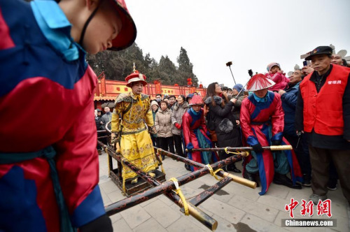 2017雞年春節(jié) 北京地壇上演“皇帝”仿清祭地 中新網(wǎng)記者 金碩 攝