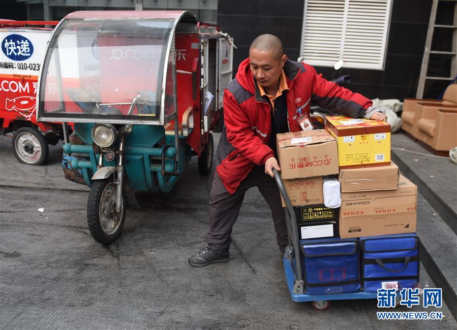 1月28日,京東快遞員閆勇在送快遞的途中。春節(jié)是萬家團圓的日子。然而,每年春節(jié),都有一批“互聯(lián)網(wǎng)小哥”不能回家,他們留在大城市,為人們送快遞、開專車……他們的奮斗,讓大家的春節(jié)更方便!盎ヂ(lián)網(wǎng)小哥”的工作大多非常辛苦,因此,在這些行業(yè)里男性從業(yè)者偏多。在大城市春節(jié)冷清的街道上,經(jīng)常能夠看到他們忙碌的身影,他們是我們身邊“最熟悉的陌生人”。“互聯(lián)網(wǎng)小哥”崛起的背后,是“互聯(lián)網(wǎng)+”飛速發(fā)展的時代背景!癘2O”“B2C”“人工智能”“融資”“估值”……這些“高大上”概念的另一端,是無數(shù)“互聯(lián)網(wǎng)小哥”的奮斗、拼搏和堅守。新華社記者 羅曉光 攝