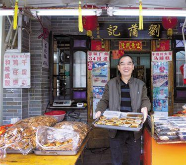 在西關(guān)大屋前,街坊鄰里預(yù)訂的各種糕點一出爐,馬上就被取走,從香港等地來的游客也會購買馬蹄粉、雞仔餅、鮑魚酥等年貨。劉翠云和嫂子在鋪門前招呼著客人,劉老太坐在門口看熱鬧,開心地和熟人打招呼!斑^年了,人來人往,很高興!”看著兒孫滿堂、顧客盈門,劉老太說,過年最重要就是一家人團團圓圓,這比什么都可貴。