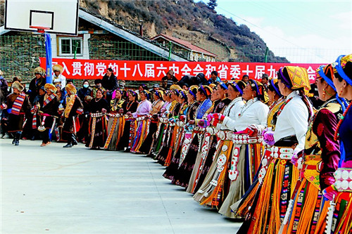 黑水縣群眾跳起鍋莊,歡慶新春佳節(jié)。 胡偉 攝
