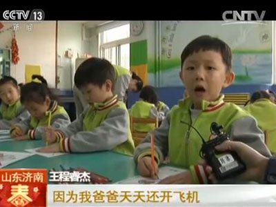 王程睿杰:可是我不愿意,因為爸爸天天在開飛機(jī),媽媽一個人在家照顧不了兩個孩子。