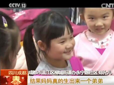 記者:媽媽答應(yīng)什么時候給你生個小妹妹?