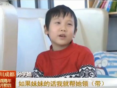 孫宇皓:有,就是如果是弟弟的話我就不幫她領(lǐng)(帶),妹妹的話我就幫她領(lǐng)(帶)。因為弟弟太調(diào)皮了,如果把我惹毛了我就打。