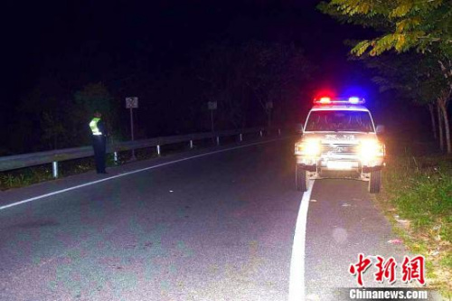 森林、交通警察對高速公路進行臨時交通管制!〕W诓 攝