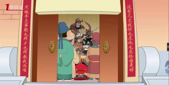 《六月說過年》也是我們擔當傳承和教育使命的一次嘗試,動畫中出現(xiàn)的眾多春聯(lián)、對聯(lián)都是我們精心挑選的,其中絕大部分都是傳統(tǒng)常見的經典春聯(lián),也有個別的屬于詼諧幽默,不見得有多么經典,但也能看出民間的許多智慧。比如財神廟門上的對聯(lián)“沒有幾文錢你也求他也求給誰是好,不做半點事朝也拜夕也拜教我為難”,看完讓人忍俊不禁,細思量幾成真理:與其坐等賜福難為財神,不如擼起袖子實干興邦。求神不如求己!類似的還有灶神旁的對聯(lián)“上天言好事,回宮降吉祥”和古戲臺上的對聯(lián)“欲知世上觀臺上,不識今人看古人”,寥寥數(shù)字就把敬神的內涵和看戲的本質說清楚了,真是神來之筆。