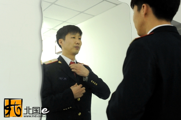 每天早晨,牛云峰都會(huì)在班前整理好自己的著裝,以最好的形象展現(xiàn)在旅客面前。